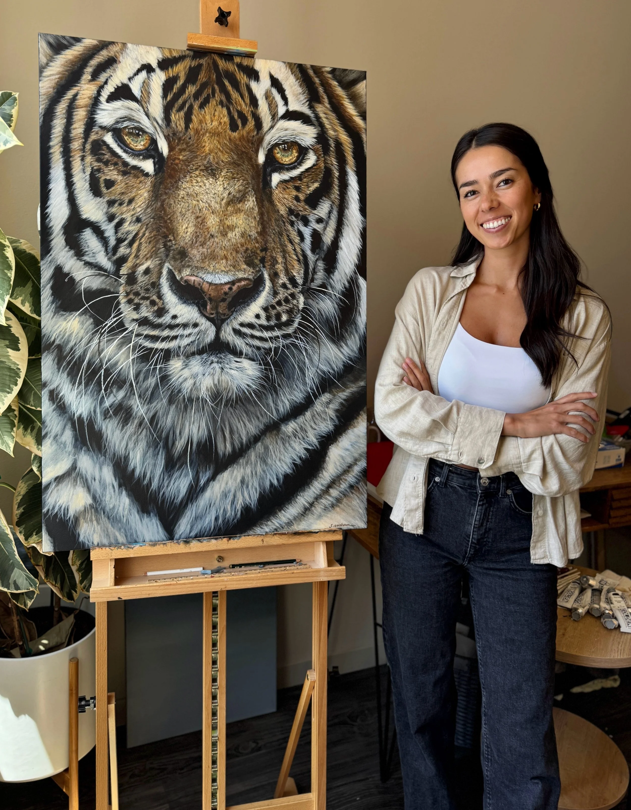 That same year, Selina exhibited at the Palo Alto Festival of the Arts, where numerous originals found their new homes and a significant portion of proceeds was donated to the Wildlife Conservation Network, a Bay Area nonprofit funding conservation efforts worldwide. She first participated in the festival in 2024, with sales from her debut collection benefiting the Great Plains Initiative’s Big Cats Foundation.